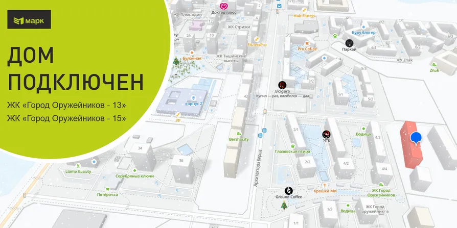 ЖК "Город Оружейников-13" и ЖК "Город Оружейников-15" подключены к нашей сети