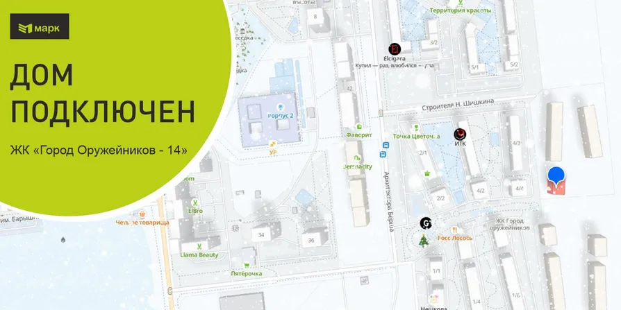 ЖК "Город Оружейников-14" по адресу ул. Строителя Н. Шишкина 6/2 теперь со всеми цифровыми услугами Марка.